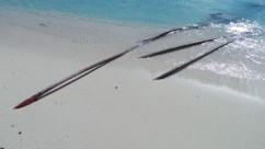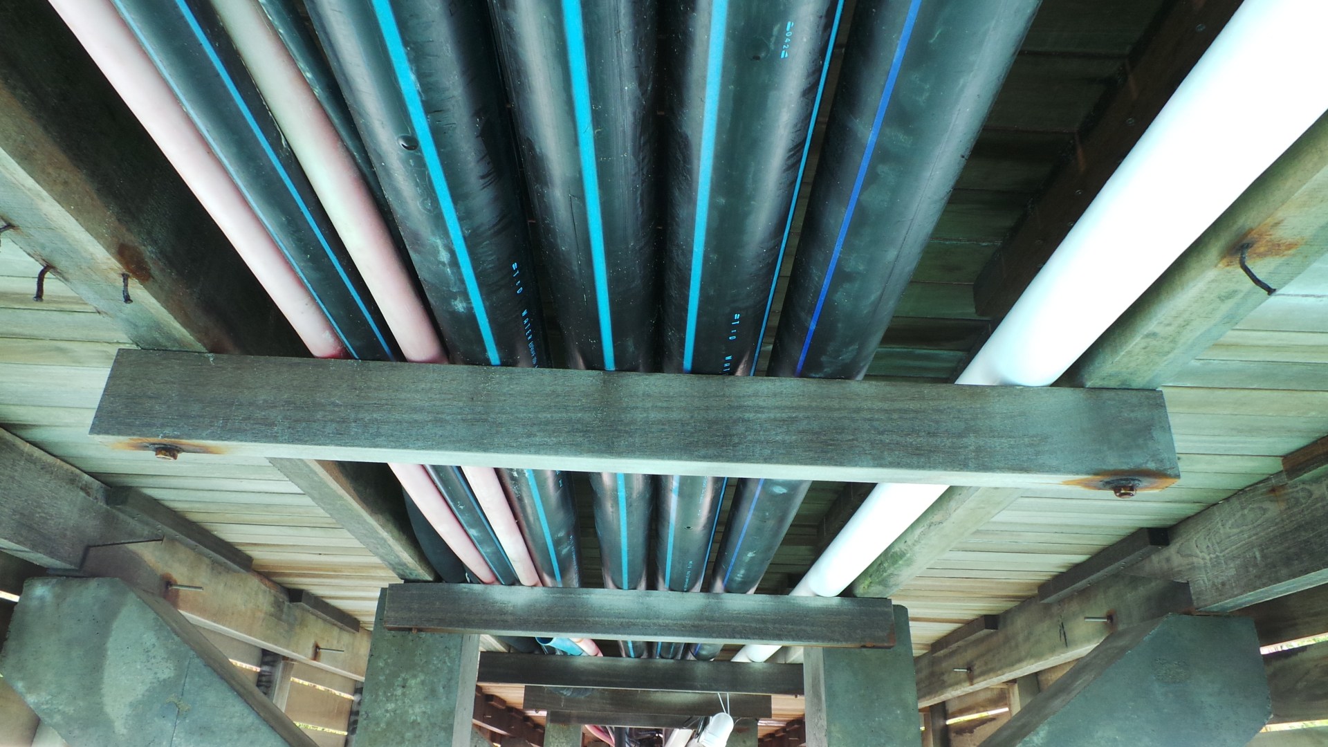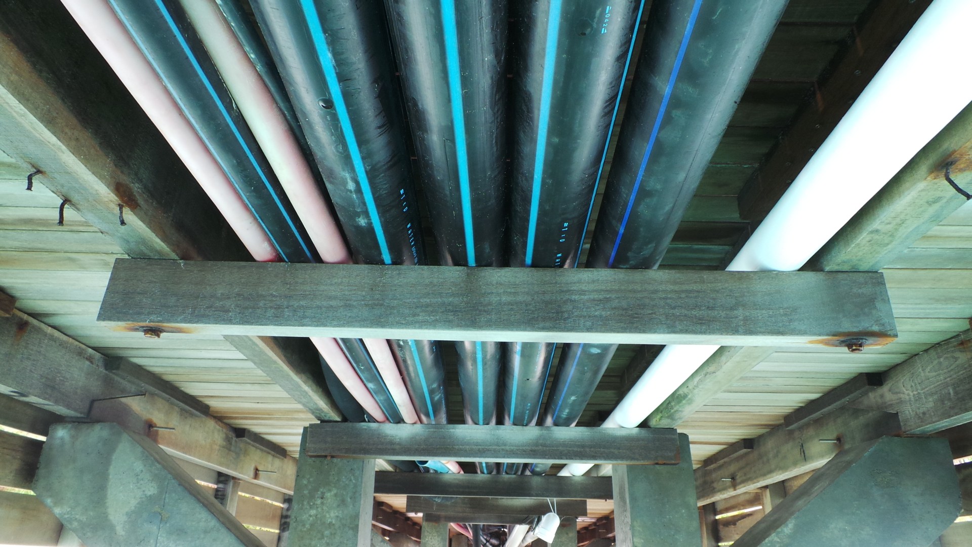 Stávající potrubí bylo vlivem nevhodného kotvení a uložení v moři vyplaveno na hladinu